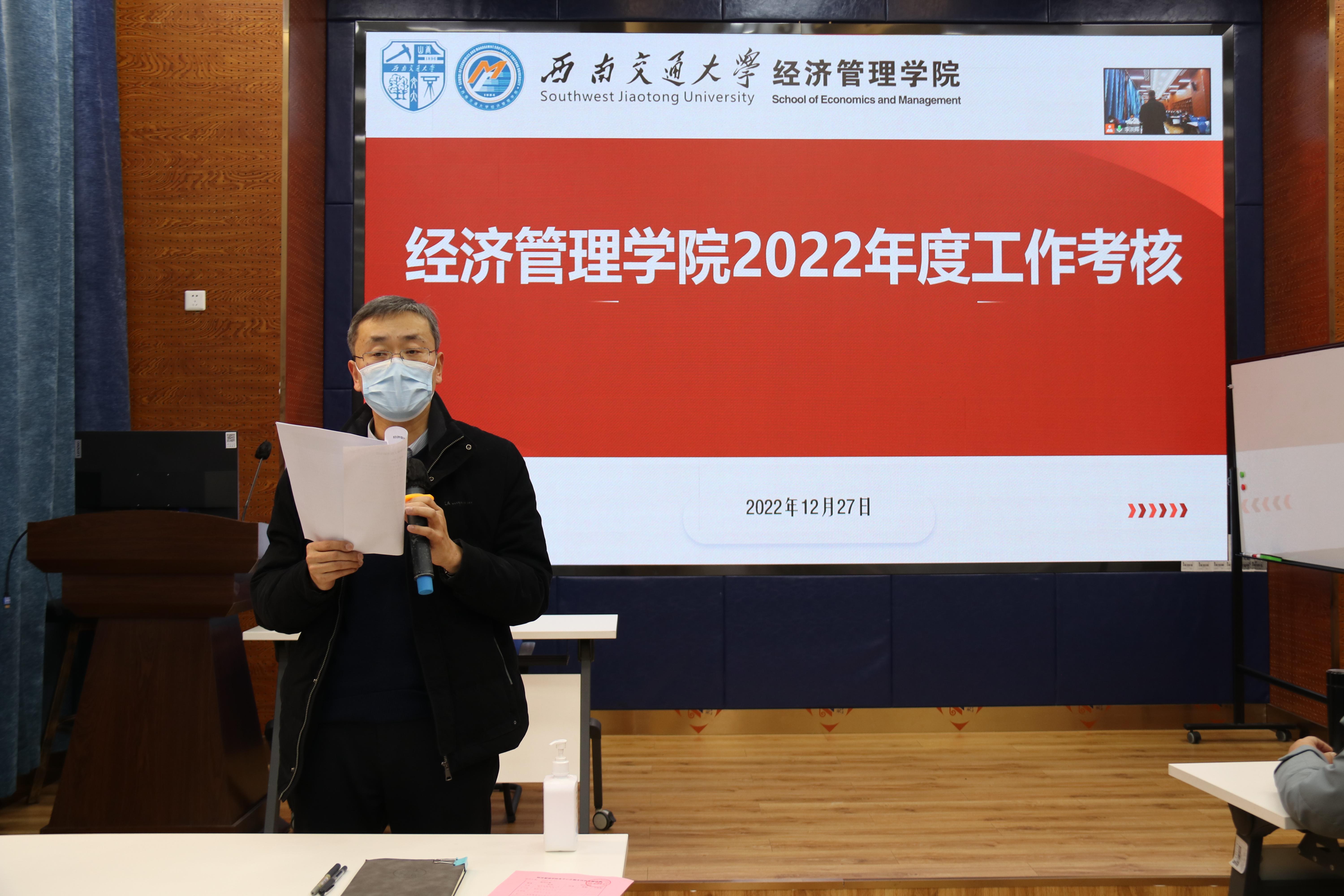 2022年12月27日下午2点经济管理学院在九里校区0218会议室召开内设机构负责人2022年度工作述职评议考核会议学院党政领导班子成员、各部门(中心、系)正副负责人、专业负责人科职干部及教职工代表参加了述职评议考核会议,会议由学院党委书记王斌主持