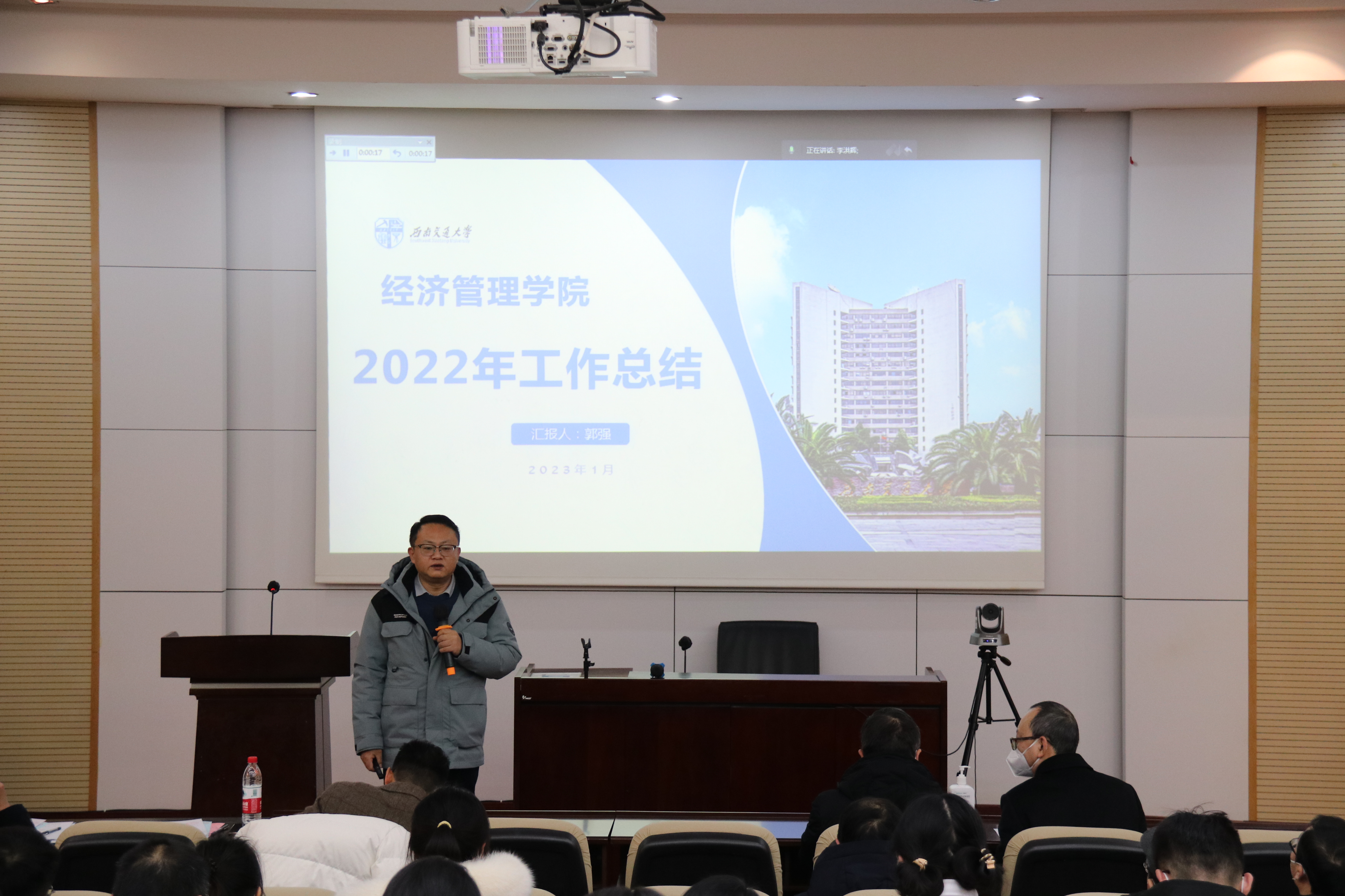 学院执行院长郭强从党建与思想政治工作、学科建设、师资队伍、人才培养与教育教学、科学研究、交流合作等六个方面进行了总结汇报。