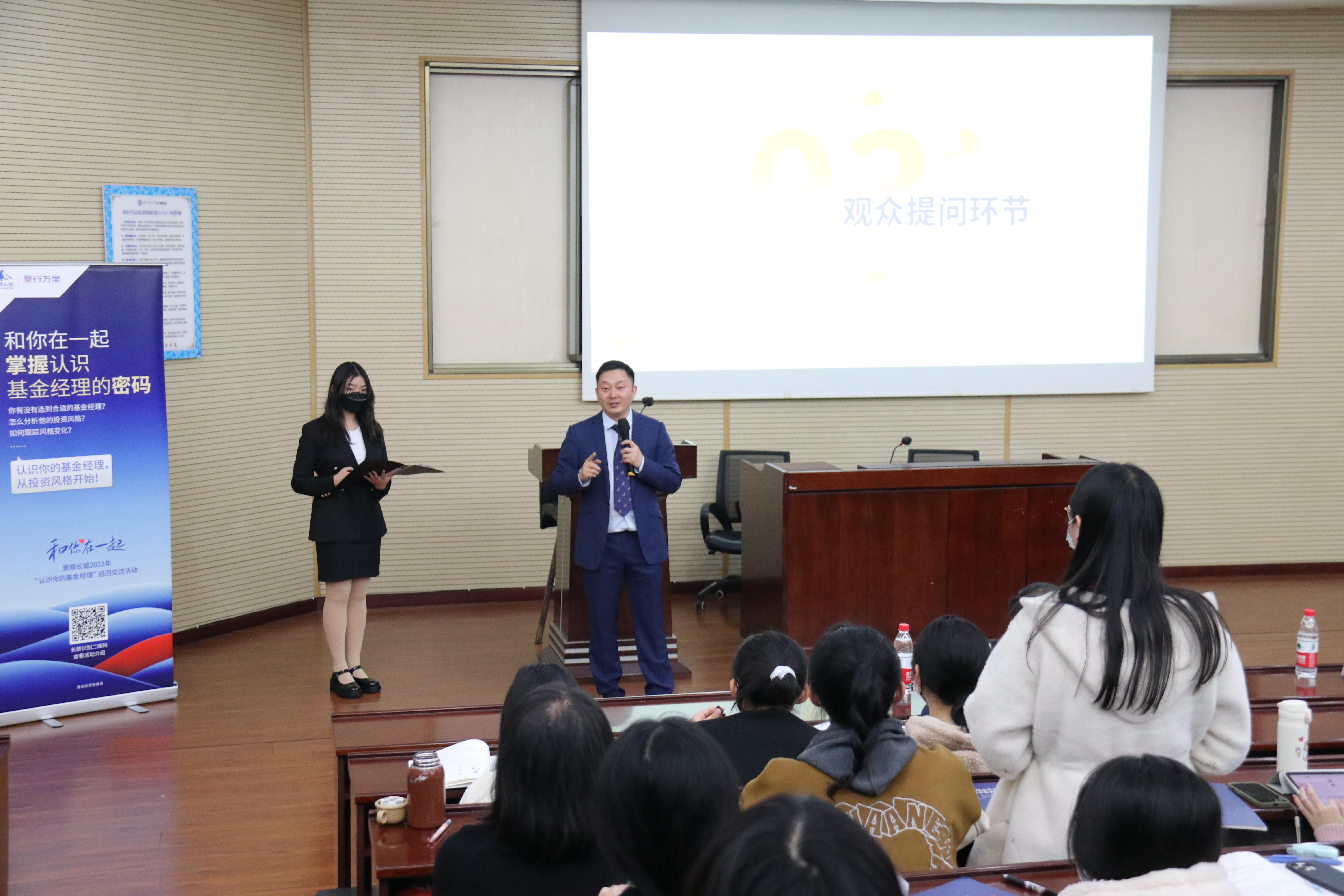 互动环节中,同学们结合自身实际积极提问,通过现场解答,大部分同学都对自己的问题有了明确的答案。林依志希望同学们在课业之余能够多多学习投资知识,提高金融素养,树立正确投资理念。