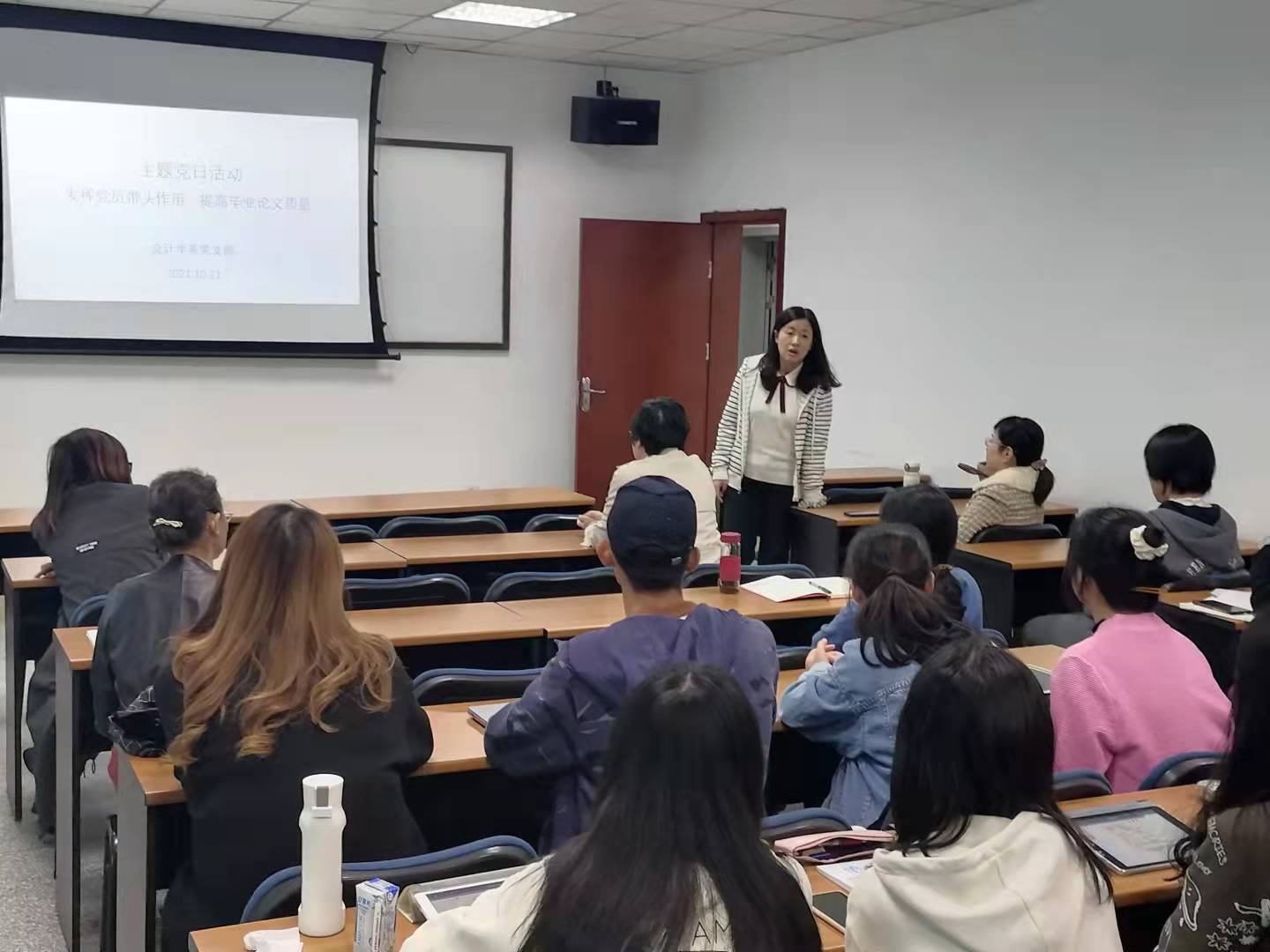 根据学校和学院党委开展“我为师生办实事”的通知,结合学院会计学专业学生毕业论文选题和撰写过程中出现的具体问题,2021年10月21日下午14:00,在西南交通大学九里校区0316教室,会计学系党支部开展了“发挥党员带头作用,提高毕业论文质量”主题党日活动,学院党委委员、副院长周嘉南同志列席并指导本次主题党日活动。本次主题党日活动的目的在于“发挥党员带头作用,提高毕业论文质量”,具体内容包括会计论文选题、论文研究方法的选择、论文撰写规范、如何处理实习和毕业论文写作关系等。会计学系党支部八位党员教师和二十余位会计专业本科生、会计专业硕士研究生、会计学学术硕士研究生共同参与这次活动。