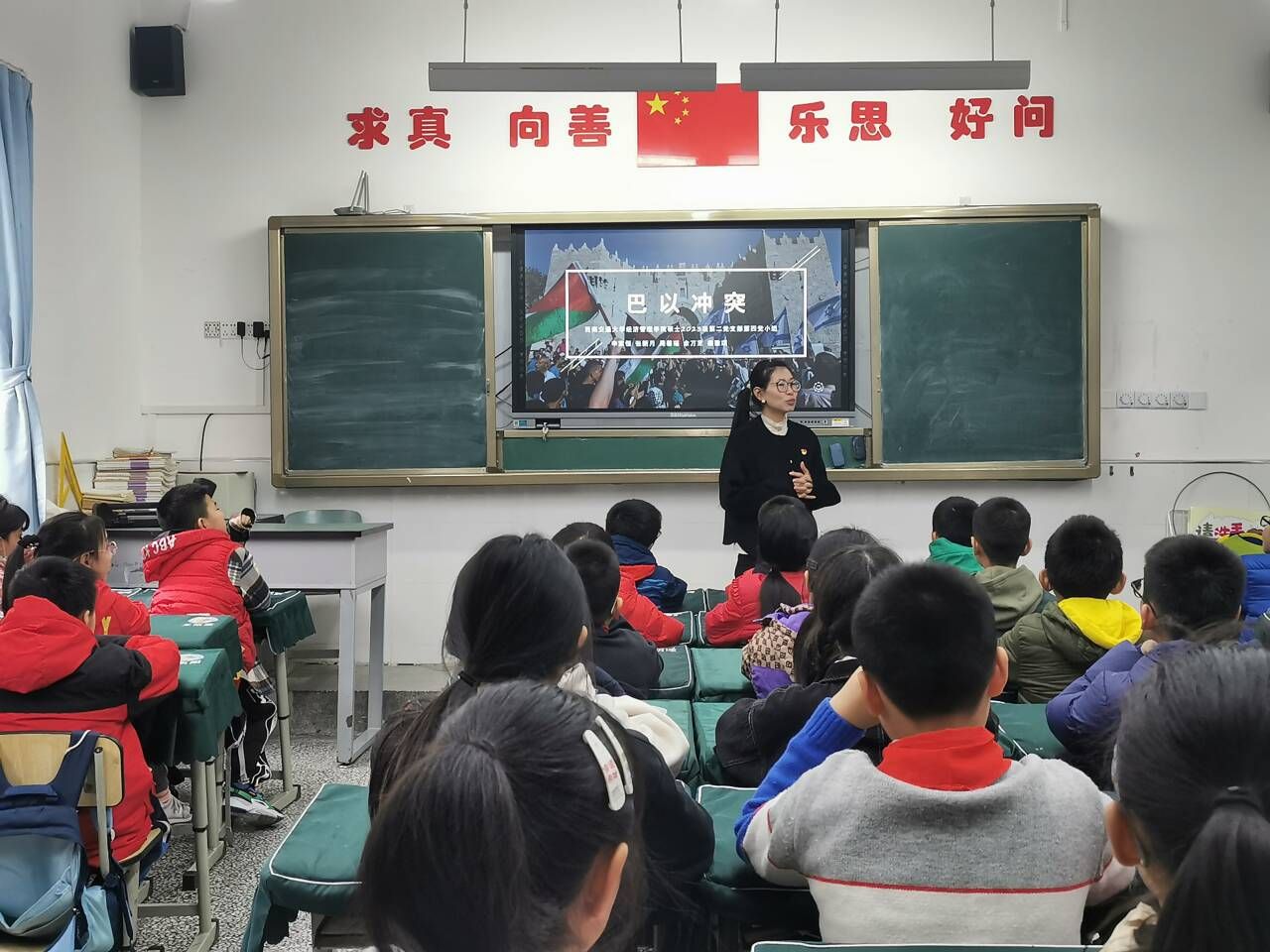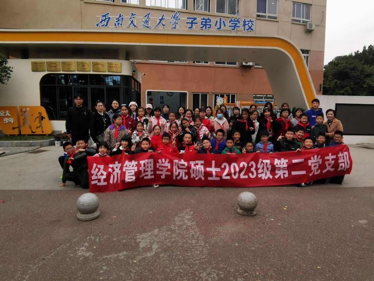 硕士2023级第二党支部书记贾佳老师带着硕士2023级第二党支部的党员们来到了西南交通大学子弟小学,就同学们近日关心的国际热点问题进行了相关知识的讲解。